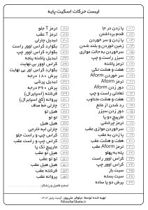 - چارت آموزشی بسته به صلاح دید مربی و توانایی، سن، هدف و سطح ورزشکار ممکن است شامل تغییراتی در ترتیب آموزش حرکات شود